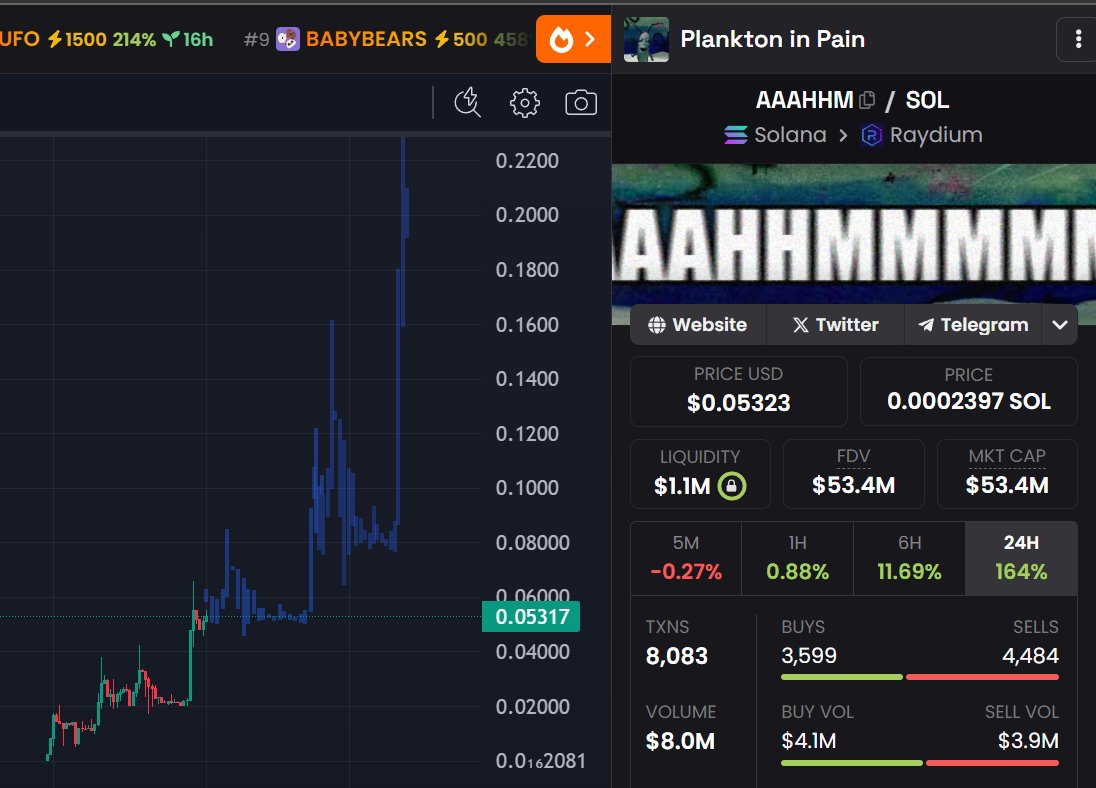 Massive launch from $PENGU today and the expectations are we get a "liquidity suck" in other coins. If that's the case some bets to build on fall into the TikTok/AI agent meta.. $AAAHHM on SOL is a banging meme that's been blowing up globally with an incredibly resilient chart.