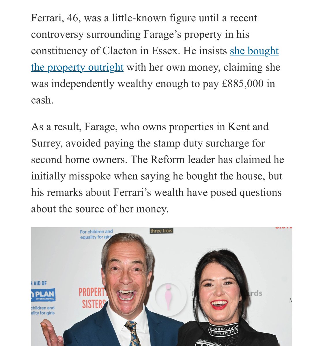 Farage’s partner - the fraud files https://t.co/P2eviVJBKQ which raise more questions about where she found £885,000 to buy Clacton house that Farage ‘misspoke’ to say he bought. Times says Brussels may look again at “his colourful two decades as an MEP between 1999 and 2020”