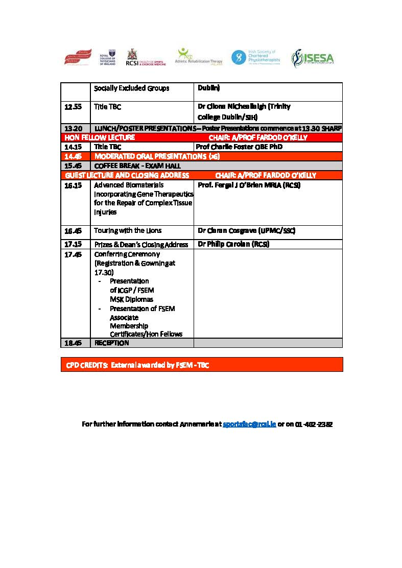 Just 1 week to go!! ASC Friday 19th September - RCSI. FINAL Programme Outline below. Complete Conference Programme will be circulated next week! CPD Credits – 6 Approved by RCSI. Event has BJSM approval & is proudly sponsored by UPMC/SSC. To Register: https://t.co/UL20VwupEM