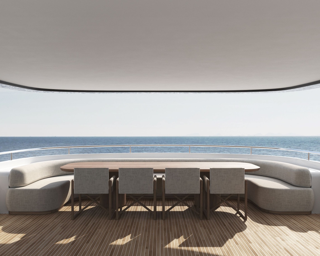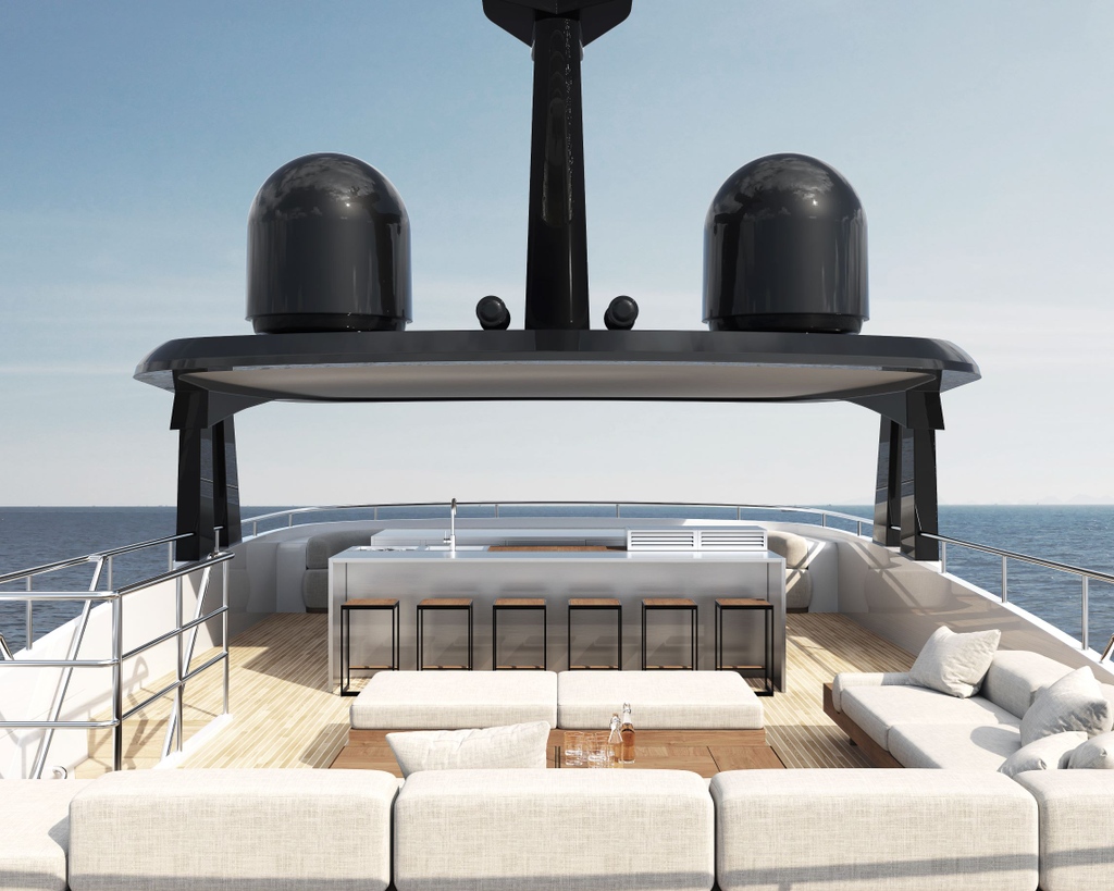 These stunning impressions are making us daydream! YN201 will feature an extended sun deck with a total of 65m², that's an extra 2.5m of space on-board! https://t.co/tMcblFC8y0 YN201 - 38m Moonen Martinique Delivery: February 2023 Interior Design by @amlarkitekter