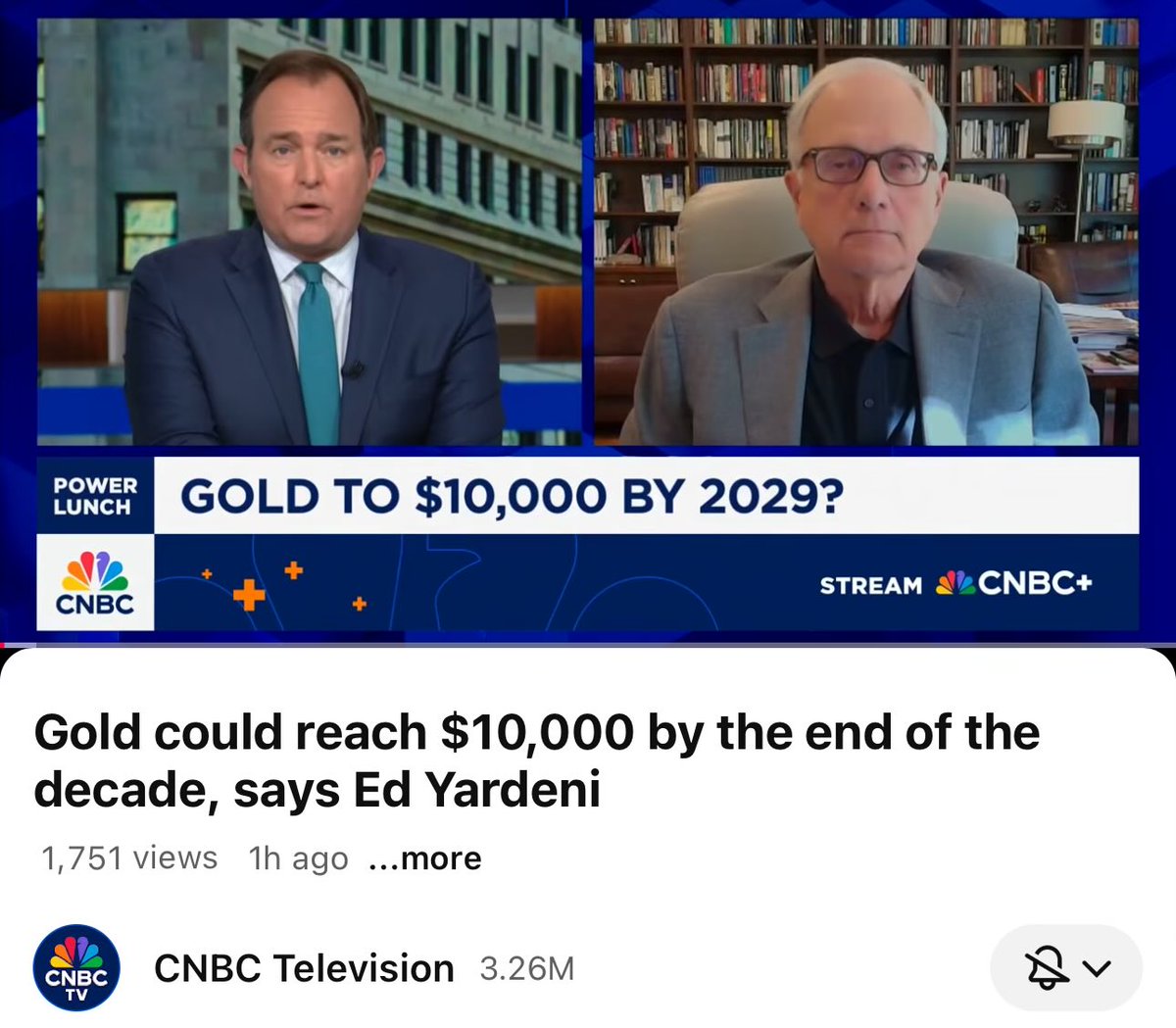 Yardeni by end of decade: $SPX 10,000 $GOLD 10,000 So ~9% CAGR for SPX ~19% CAGR for GOLD Interesting…