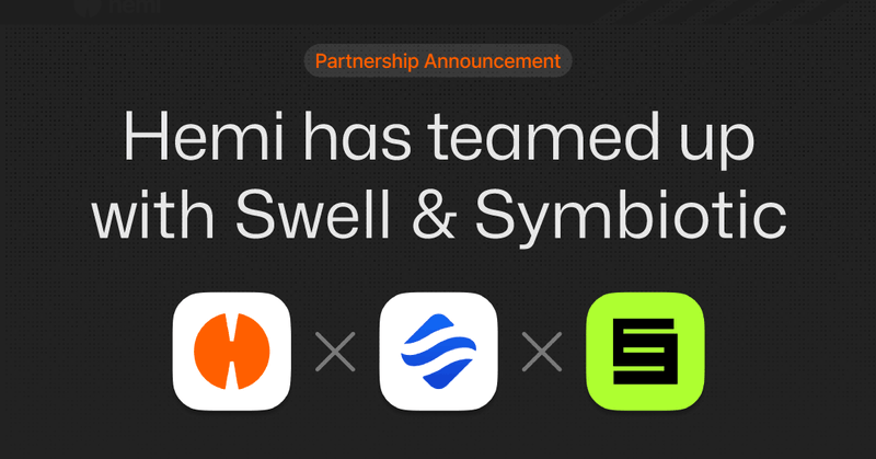 Hemi has teamed up with Swell and Symbiotic! Hemi will leverage Swellβs BTC LRT Vault on Symbiotic to source economic security for Hemiβs Bitcoin asset tunneling system. Swell Vault Operators will...