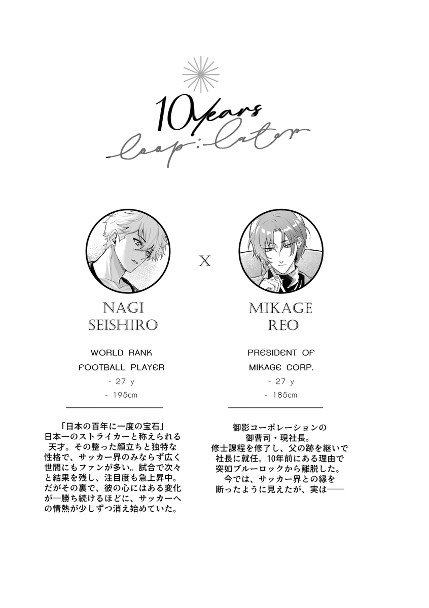 10/19 青エゴ15 / together until the end 7 東7 C70b アキアイシ ngro 新刊サンプル 「10年ループ:レーター」 A5/48ページR18 十年前、すれ違ったまま別れた二人。レオは同窓会で、叶わなかった初恋と再び巡り会う話です。 未読でもOKですが、読んだ方がより楽しめます 続きはどうぞ⬇️