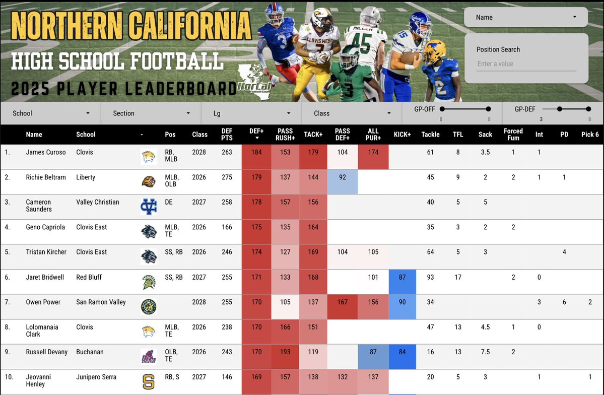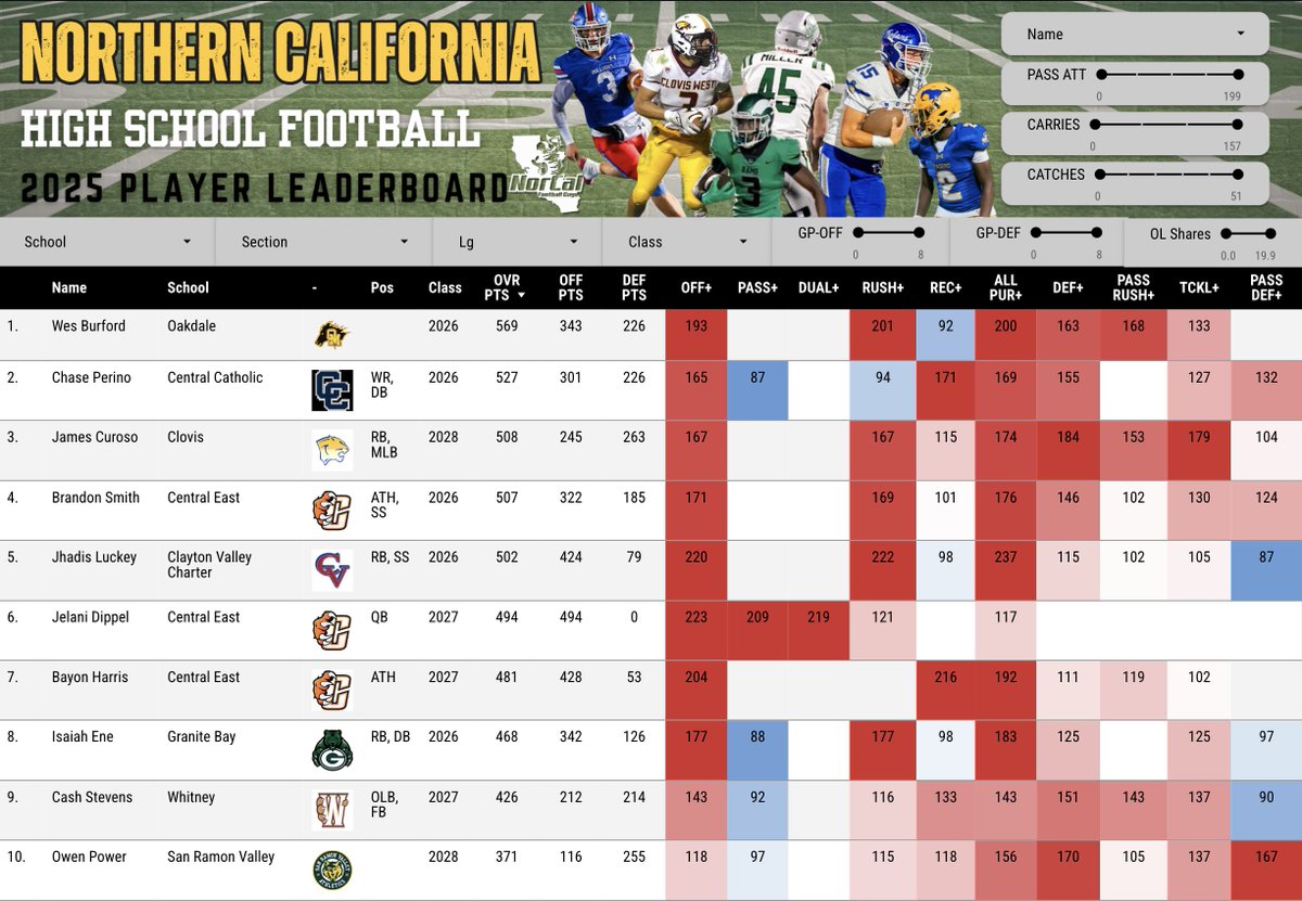 I finally had a weekend to do some catching up on the NorCal 🏈 leaderboards. I probably got 75-100 schools updated the past couple days. Pictured are overall offensive, defensive, two-way, and O-line leaders! https://t.co/cJsngctJTU