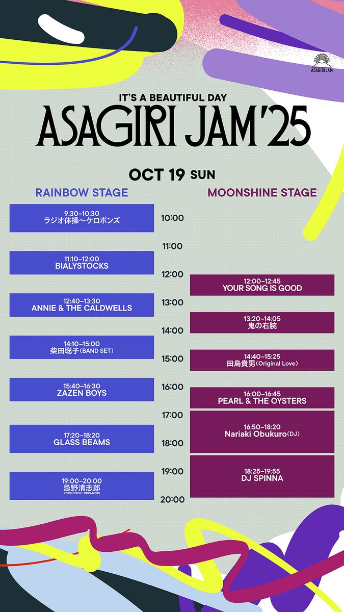 It's a beautiful day ASAGIRI JAM '25 ⋱ ✶ ついに #朝霧JAM 開催 ✶ ⋰ HIATUS KAIYOTE、GLASS BEAMS ら 豪華アーティストたちが朝霧高原に集結! ⏰ TIME TABLE オフラインでも確認できるように 事前に保存しておくと安心📲 👇 こちらからもダウンロードできます » https://t.co/dv6bYIRODg