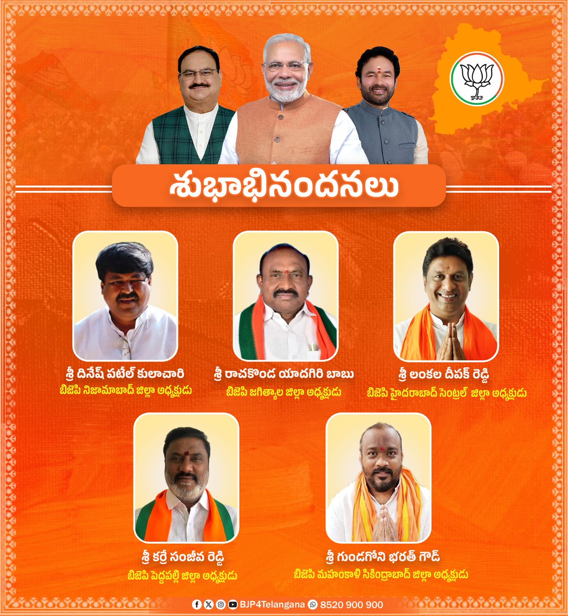 బిజెపి తెలంగాణ సంఘటన్ పర్వ్ 2024 సంస్థాగత ఎన్నికల అనంతరం నూతనంగా ఎన్నికైన బిజెపి జిల్లా అధ్యక్షులకు హార్దిక శుభాకాంక్షలు.