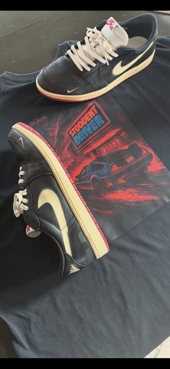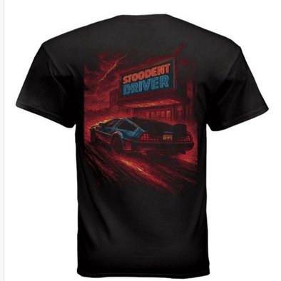 This is my very first shirt design for Stoodent Driver!! Limited to only 100 made!! This is the Back to the Future DeLorean hitting 88 mph in front of the movie theater playing βStoodent Driverβ π₯....