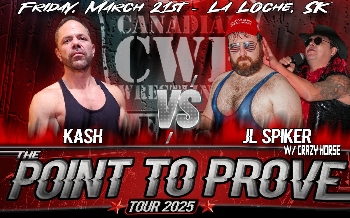 Mar 21 @CWECanada La Loche, Saskatchewan: @HIWCanada Legend @TheKingKash1 vs. "The American Psycho" JL Spiker w/Crazyhorse