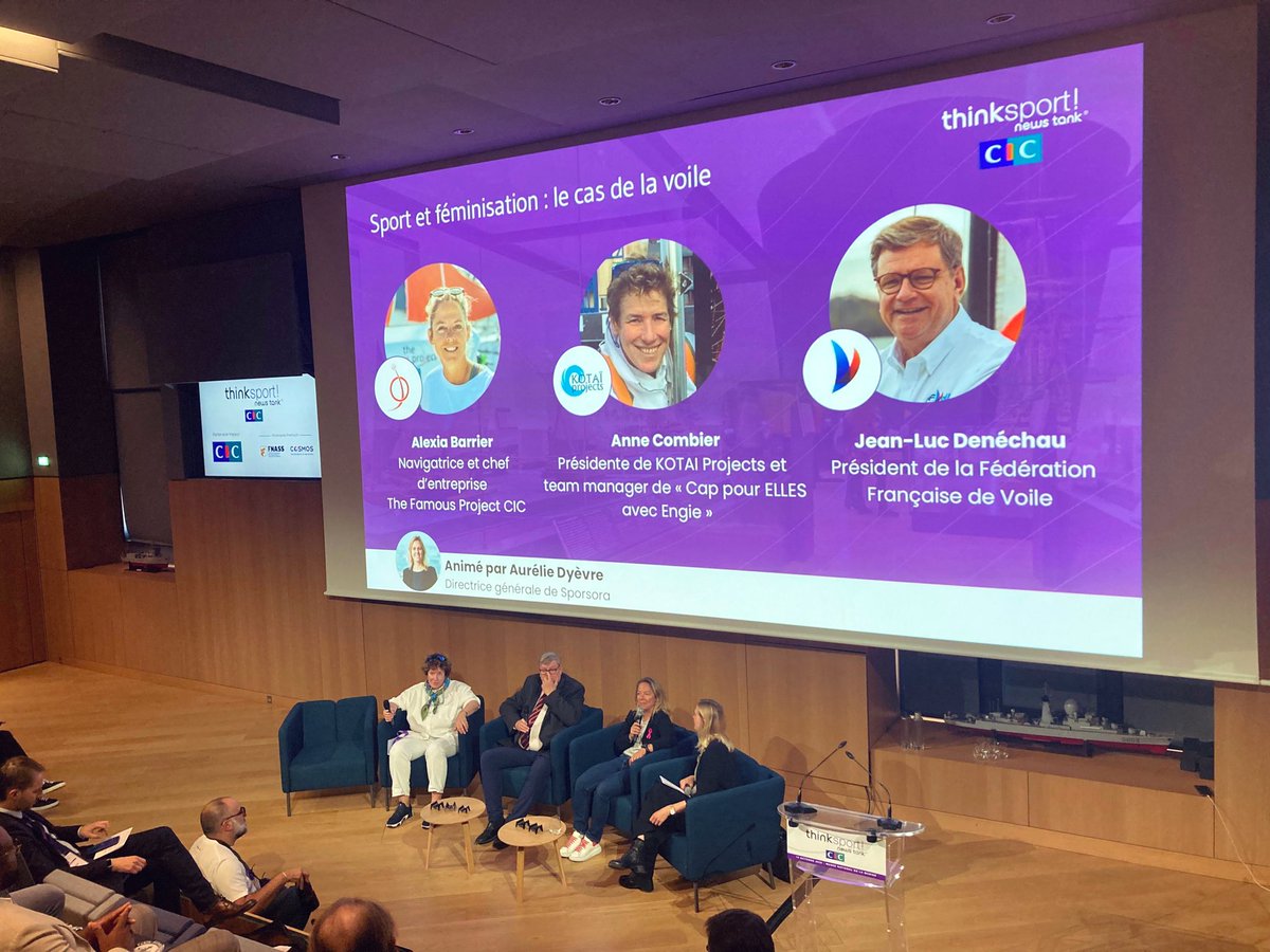 [Think Sport CIC 2025] ⛵️ @Alexia_Barrier, navigatrice et fondatrice de The Famous Project CIC, participe à la table ronde « Sport et féminisation : le cas de la voile » en compagnie d’Anne Combier, présidente de KOTAI Projects et Jean-Luc @denechau, président de la @FFVoile.