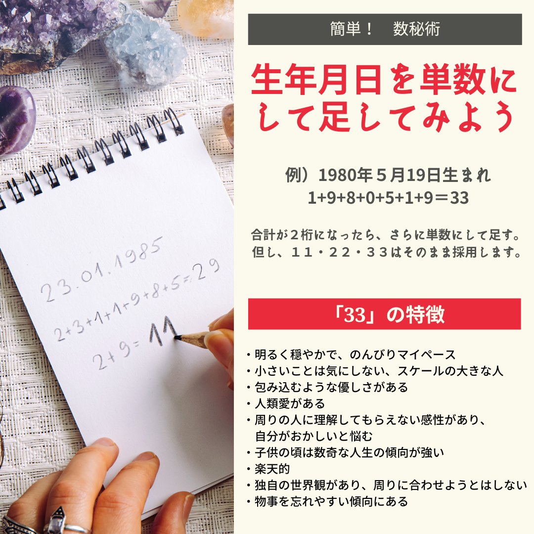★今日の数秘術レッスン【33の意味と特徴】💫 👉詳細は: https://t.co/XU6NaPRn5M 生年月日から「性格・相性・金運・恋愛傾向」まで読み解ける✨ 数字を足すだけだから、占い初心者にもおすすめ◎ ✅難しい用語なし ✅人間関係のヒントに ✅自分の強みが見えてくる!