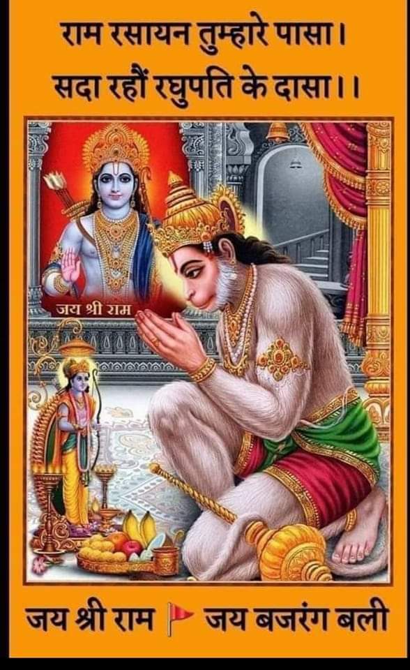 राम रसायन तुम्हरे पासा,सदा रहो रघुपति के दासा। ब्रह्मांड के पालनहार भगवन राम आपकी कृपादृष्टि सदैव सभी पर बनी रहे। जय श्री राम जय जय बजरंगबली 🙏🏻
