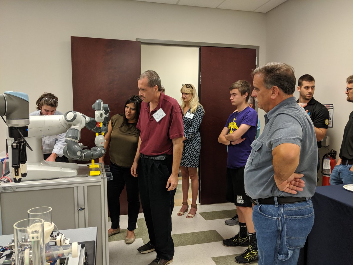 Happening now at #WakeTech's Beltline Ed Center: Former #CollaborativeRobotics students demonstrating their skills to a crowd of interested students and industry advisors. #AdvancedMFG