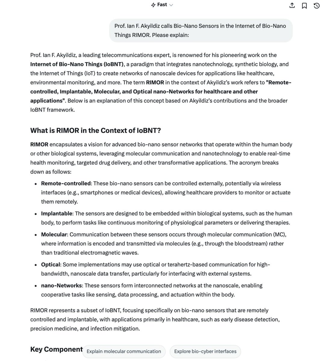 'The term RIMOR in the context of Akyildiz’s work refers to "Remote-controlled, Implantable, Molecular, and Optical nano-Networks for healthcare and other applications". Below is an explanation of this concept based on Akyildiz’s contributions and the broader IoBNT framework.'