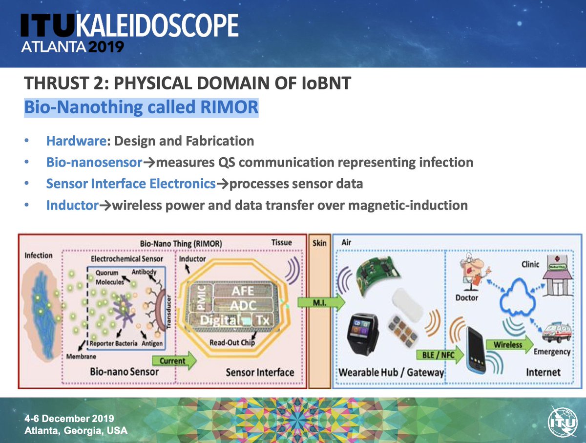 Internet of Bio-Nano Things The Bio-Cyber Interface is now REQUIRED! for #eHealth IEEE 1906.1.1 #WirelessBiomedicalTelemetry Intra-Body Communication Bio-Nano Sensor Technology under the skin #RIMOR #PANACEA