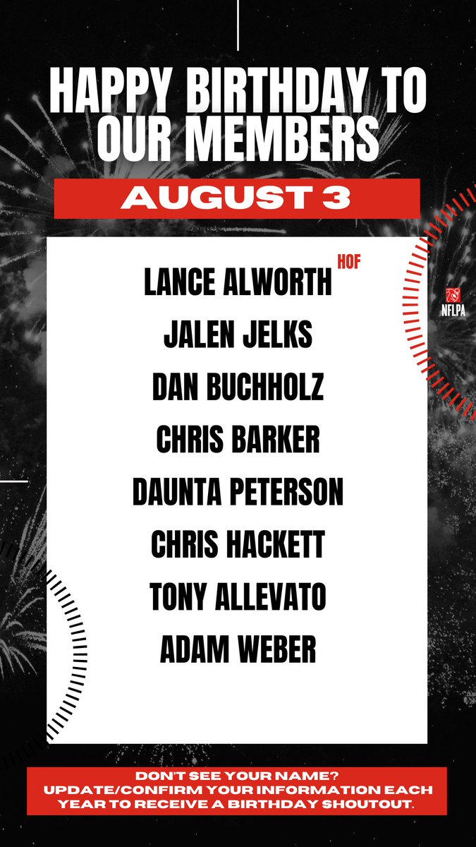 Happy birthday to our members - @TRawls810 @Jalenjelks @_DanBuchholz_ @TG3II @TCU3 @ndkalu @dwill_76 @DauntaPeterson @BlackmarBlake @Adam_Weber8 - Wishing all the best for you! Don't see your handle? Update on https://t.co/nvjLkOTd6w.
