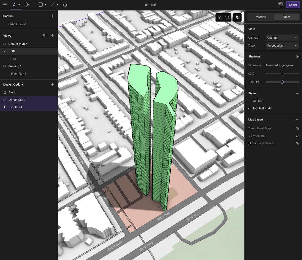 It's that one building proposal in the Sunset, as the Torn Leaf, modeled in @ArcolTech