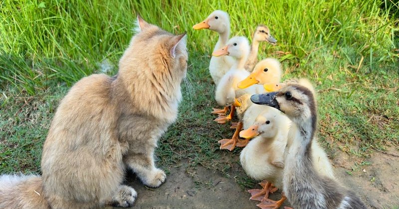 These ducklings follow a cat as their leader, they follow her everywhere! #catsandducks, #animalfriendship, #cutepets, #viralvideo, #catlife, #ducklings, #petlove, #funnyanimals, #petfriends