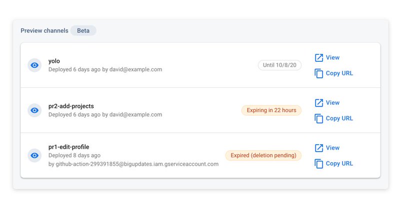 👀 The biggest Firebase Hosting update ever? We sure think so! Introducing preview channels, cloning, and GitHub Action support. Check it all out ↓
