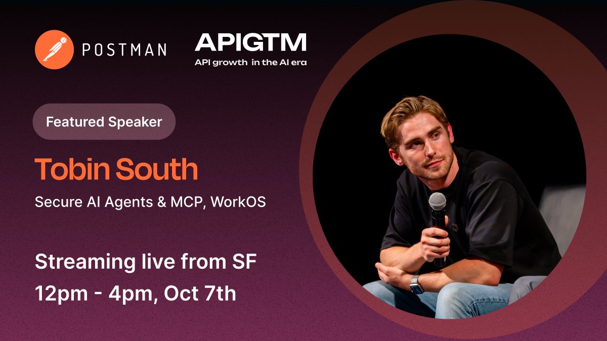 Join @TobinSouth live at APIGTM, hosted by @getpostman, during @Techweek_. His session on MCP Auth will cover the present challenges, future plans, and big dreams we all want to see. Register below 👇