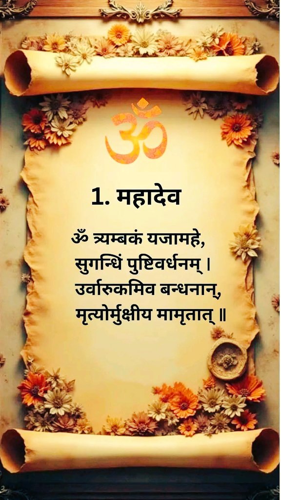 реР рддреНрд░реНрдпрдореНрдмрдХрдВ рдпрдЬрд╛рдорд╣реЗ рд╕реБрдЧрдиреНрдзрд┐рдВрдореН рдкреБрд╖реНрдЯрд┐рд╡рд░реНрдзрдирдореН ред рдЙрд░реНрд╡рд╛рд░реБрдХрдорд┐рд╡ рдмрдиреНрдзрдирд╛рдиреН рдореГрддреНрдпреЛрд░реНрдореБрдХреНрд╖реАрдп рдорд╛рд╜рдореГрддрд╛рддреН редред