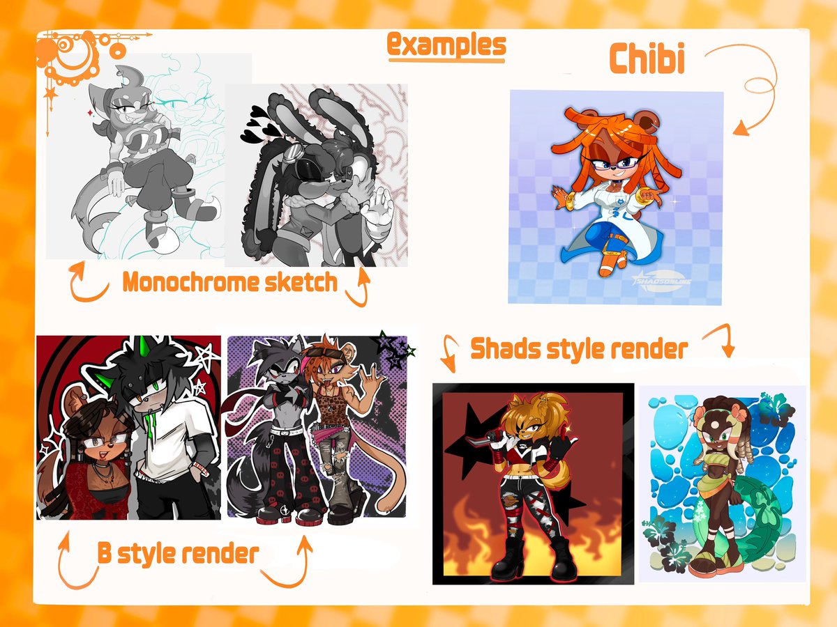 *When requesting OCs, please have a clean reference for them that I can use. Furthermore, have a pose that you would like for me to draw them in unless you want me to pick! The progress will be tracked with Trello (in my carrd).