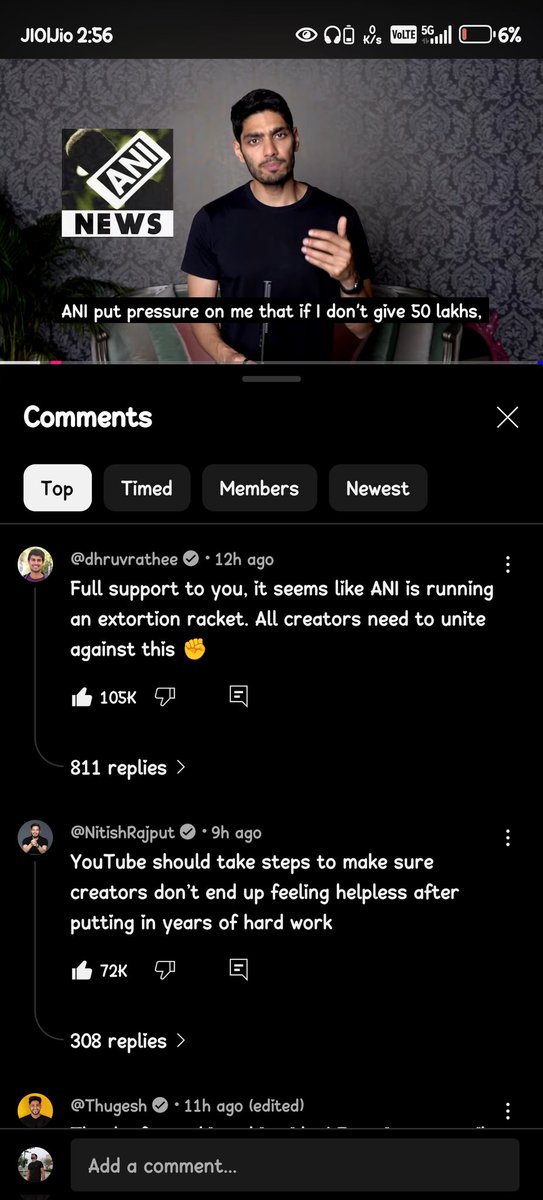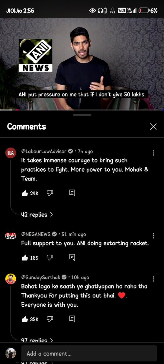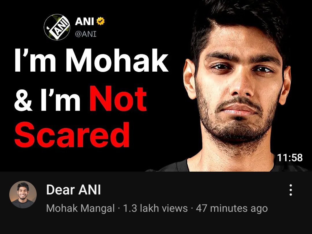 ANI, they're not afraid because they're backed by the government. I was so happy to see support in the comments of Mohak Mangal's video — from educational YouTube creators across the spectrum: left, right, and center. Love to see them united for a good cause! #ANI #mohakmangal