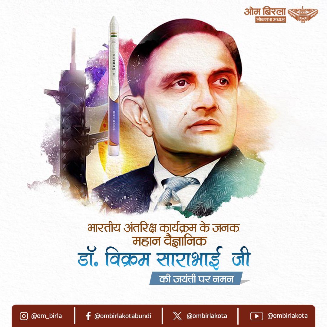 भारतीय अंतरिक्ष कार्यक्रम के प्रणेता, महान वैज्ञानिक, पद्म विभूषण से सम्मानित डॉ. विक्रम साराभाई जी की जयंती पर सादर नमन। भौतिक अनुसंधान प्रयोगशाला की स्थापना के साथ उन्होंने भारत में वैज्ञानिक अनुसंधान की नींव रखी और भारतीय अंतरिक्ष अनुसंधान संगठन (ISRO) की स्थापना के माध्यम से